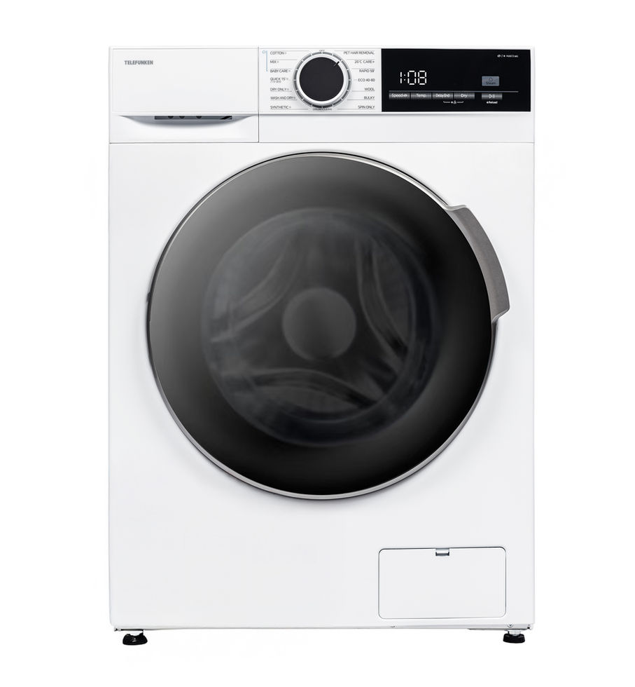 The Telefunken 8kg/5kg Front Load Washer Dryer Combo is a compact all-in-one laundry solution, perfect for modern households. With 16 wash programs, 3 drying cycles, Steam Assist, and a 90°C Hygiene Wash, it delivers superior fabric care and hygiene. Energy-saving features like Eco Wash and specialized options such as Pet Hair Removal make it both efficient and versatile. Backed by a 10-year motor warranty, this washer dryer offers performance, convenience, and long-lasting reliability in one stylish unit.